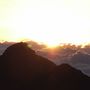 中央尖之間。哇啦,日出東方,光芒萬丈!背後北陵角也被日光照得發亮。