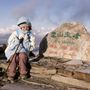 遠方哭坡上山友的屁股,督促他們往上走著。休息到身體也差不多冷了,九官鳥終於